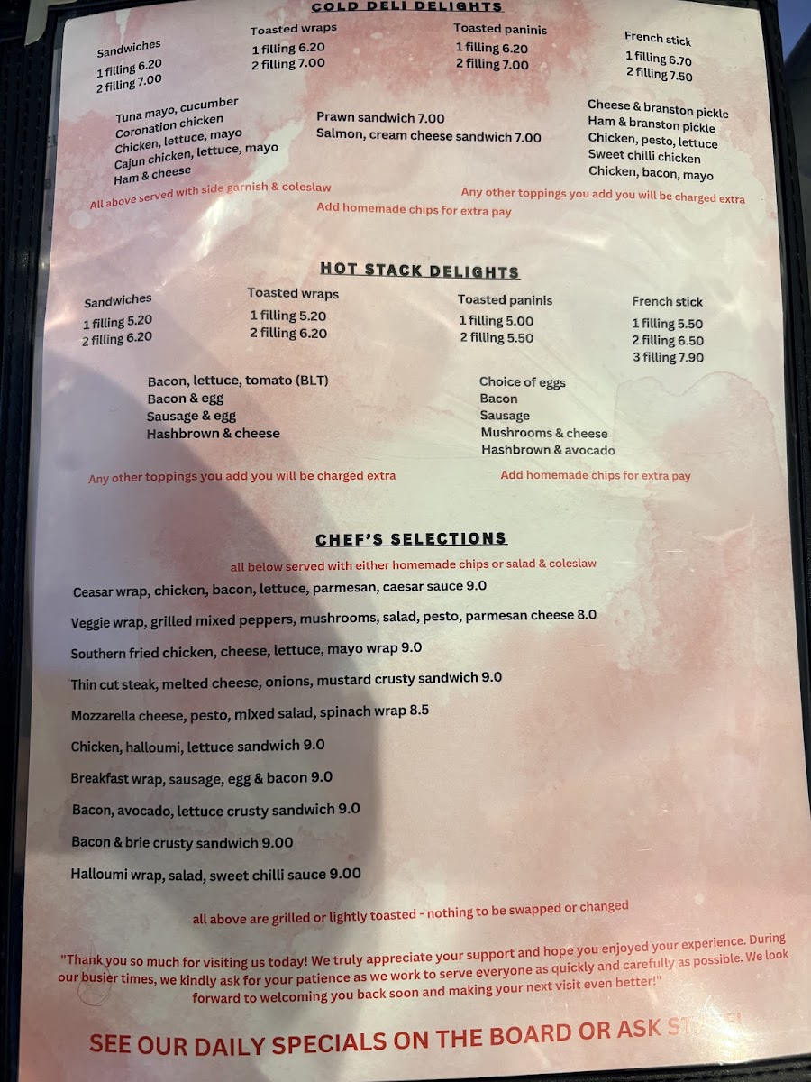 Overall, the menu supports casual visits where customers can enjoy a combination of hot drinks and varied café-style food items.