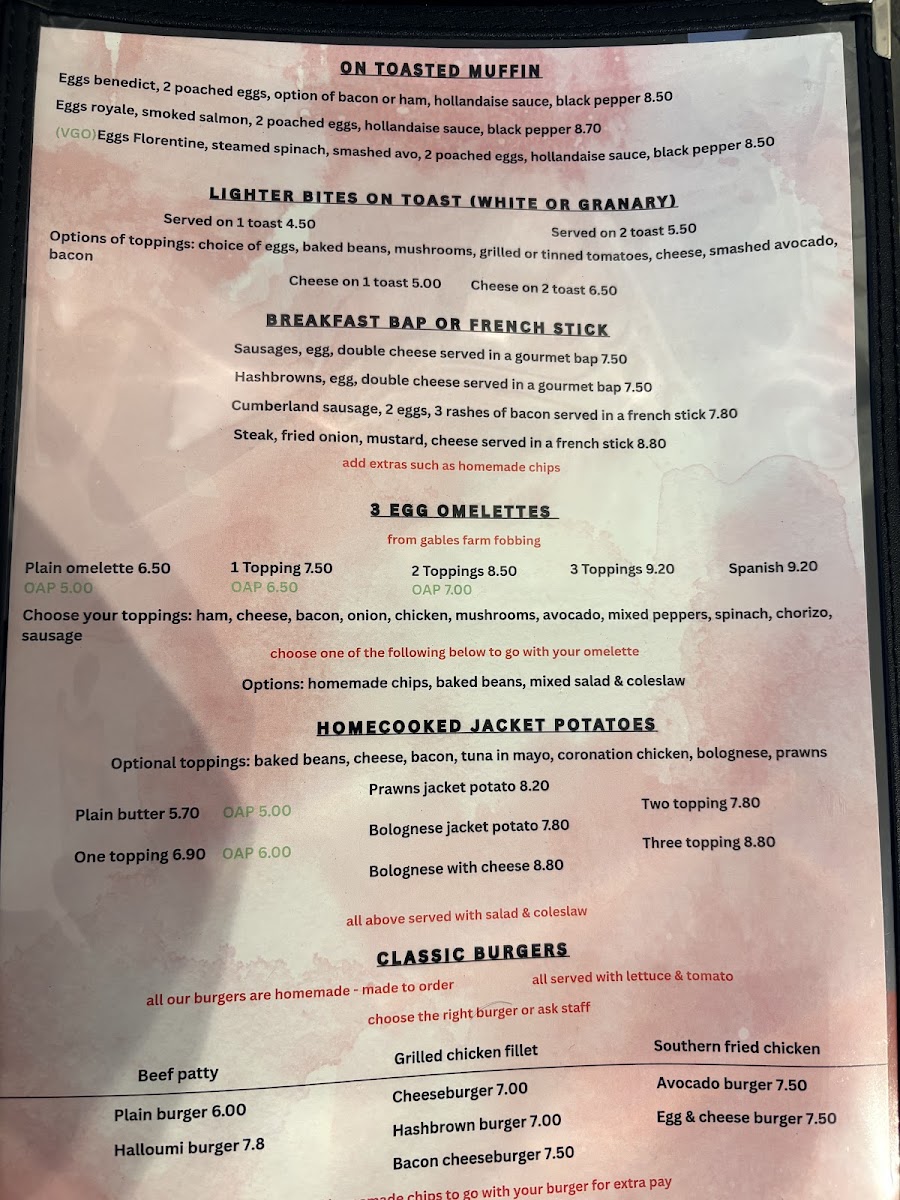 Located in Benfleet, this cafe offers a variety of coffee and tea beverages alongside a selection of light meals suitable for breakfast, lunch, or casual dining. The menu features traditional cafe staples such as cappuccinos and eggs Benedict, as well as specialty items like Bananas Foster. Customers can expect options including omelettes, smoothies, and other breakfast dishes.